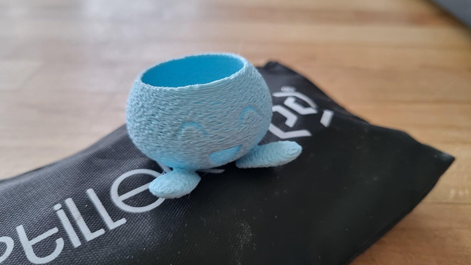 Danach stand ein Großauftrag von der Herzallerliebsten auf dem Programm. Dafür mussten kleine Pflanztöpfe für Sukkulenten gedruckt werden. Ich liebe Fuzzy-Skin und hier habe ich mit einer schlechten 0,3er-Auflösung einen gedruckt.