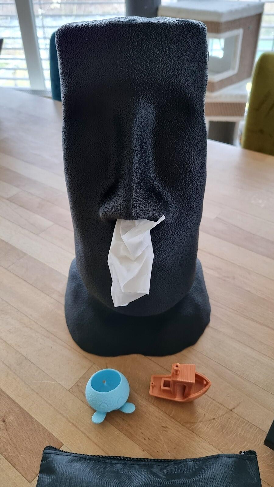 Last but not least musste natürlich aber trotzdem auch etwas der Höhe des Druckvolumen (30x30x40cm) entsprechendes gedruckt werden. Hierfür habe ich einen Moai Tissue Dispenser rausgehauen. Schlappe 32 cm hoch ist das Ding!