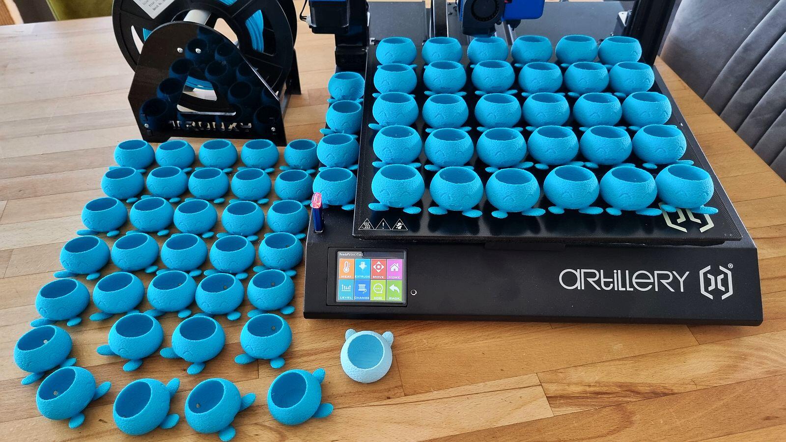 Falls ihr euch fragt, warum ich mit dem großen Drucker diese kleinen Pflanztöpfchen drucke – davon passen mehr als 25 Stück auf eine Druckplatte. Nachdem hier mal eben ~60 Stück gedruckt werden sollen, eignet sich natürlich ein solcher Drucker auch prima dafür! Nicht immer muss alles XXL in die Höhe gedruckt werden.