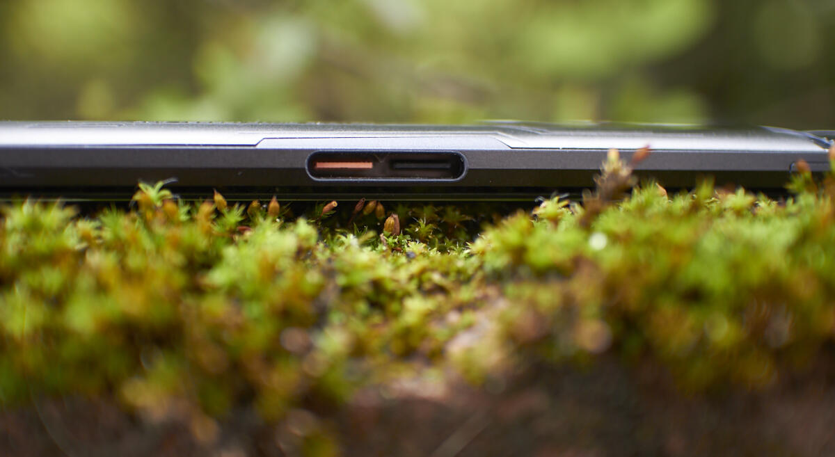 Aufpassen muss man hier jedoch, da der Anschluss gleich zwei Ports im USB-C-Design beherbergt. Zum Laden darf lediglich der rechte davon verwendet werden, der andere ist lediglich zum Anschluss von Zubehör vorgesehen. Im Fall des AeroActive Coolers wird es dank der zwei Ports beispielsweise möglich, dass das Zubehör sowohl einen USB-C-Port zum Laden als auch einen Klinkenanschluss verbaut hat. Auch das Headsetkabel kommt einem beim Zocken somit nicht in die Quere.
