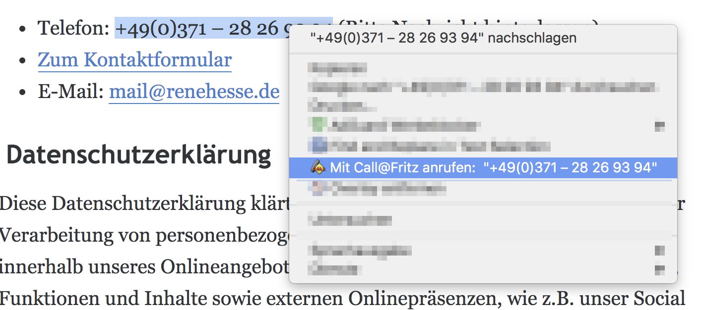 Ist alles eingerichtet, kann die Wählhilfe genutzt werden. Wenn ihr eine Telefonnummer im Web bzw. in Dokumenten seht, könnt ihr diese nun markieren und über das übliche Chrome-Kontextmenü (Rechtsklick) auswählen.