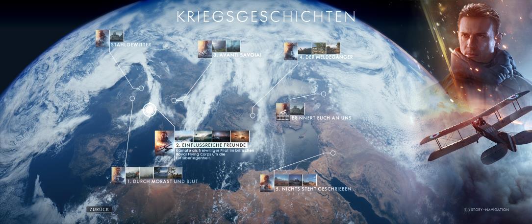 Call of Duty hat sich also in die extreme Zukunft getraut – Battlefield ist mit dem neuen, als „1“ betitelten, Teil in der Zeit zurück gereist. Der erste Weltkrieg ist der Zeitpunkt des Geschehens und wahre Begebenheiten sind die geschichtlichen Grundlagen für die Singleplayer-Kampagne. Zusammen mit dem Tutorial gibt es in dieser insgesamt sechs Missionen. Jede dieser Missionen besteht aus zwei bis drei Aufgaben. Insgesamt hat das ganze gut fünf bis sechs Stunden Spielzeit gebraucht.