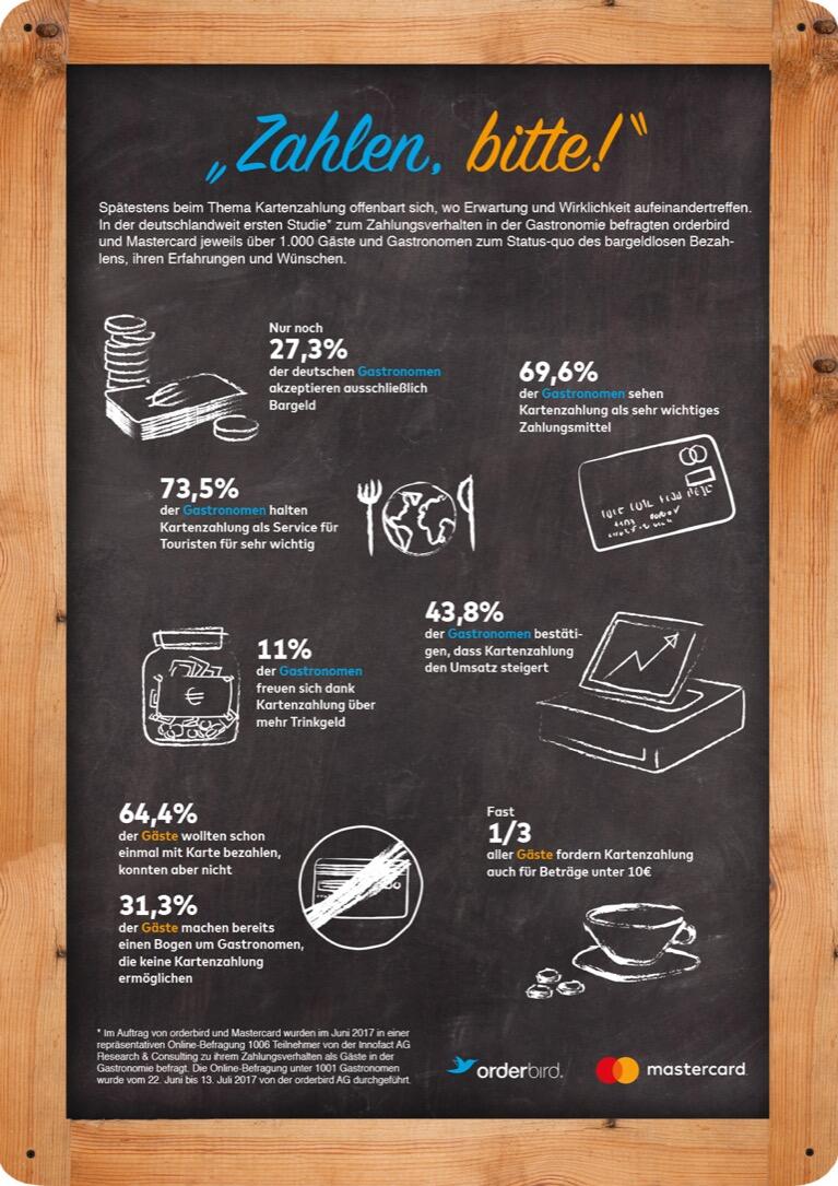 Man mag es kaum glauben, aber Kartenzahlung ist immer noch nicht bei allen deutschen Gastronomen möglich. Dennoch ist ein gewisser Trend zu erkennen. Das hat eine deutschlandweite repräsentativen Studie der Unternehmen „orderbird“ und Mastercard zum Zahlungsverhalten in der Gastronomie ergeben.