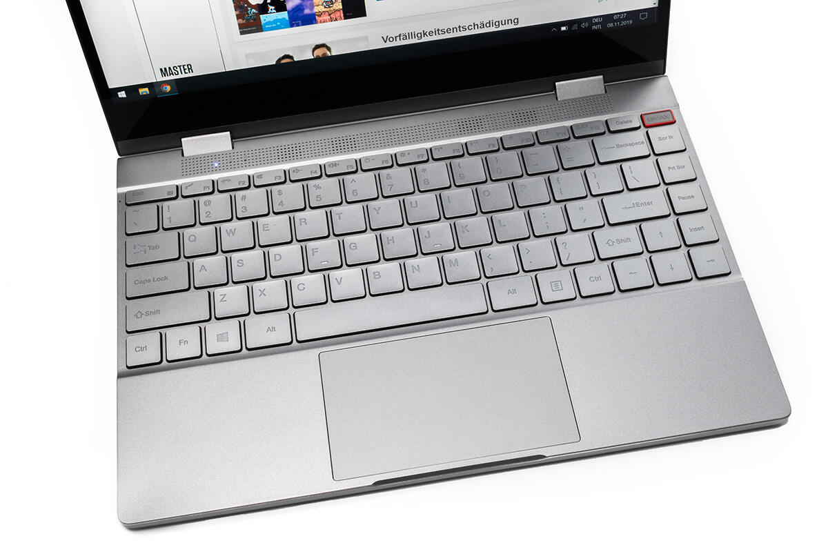 Wie bei „China-Notebooks“ üblich, wird das US-QWERTY-Layout verwendet. Sofern ihr das nicht nutzen möchtet, könnt ihr euch einfach für ein paar Euro Tastaturaufkleber besorgen und die Eingabesprache unter Windows auf Deutsch umstellen. Das ist nicht jedermanns Sache, verstehe ich nur zu gut.