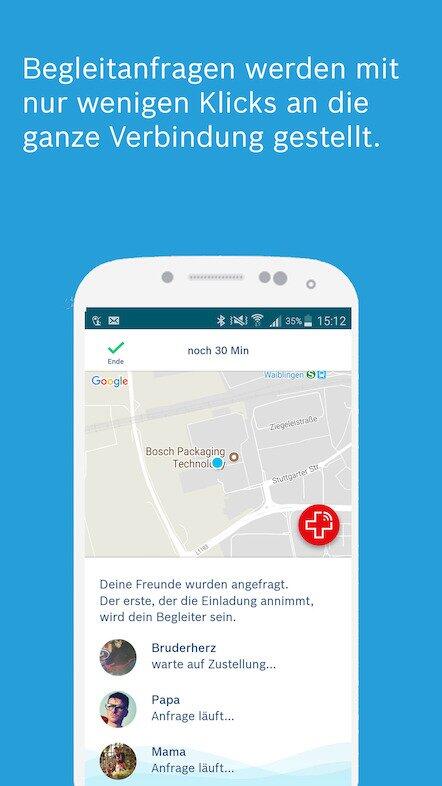 Zur Organisation kommen bei Bosch Vivatar sogenannte Sicherheitsnetze zum Einsatz, die im Grunde eine Gruppe von vertrauenswürdigen Personen darstellen. Organisieren kann sich somit beispielsweise eine Familie, aber auch Freundeskreise könnten die Funktion verwenden. Wählt man beim Start der Vivatar-App dann ein bestimmtes Sicherheitsnetz aus, wird jeder aus diesem benachrichtigt und eine Person daraus übernimmt, wenn alles klappt, die Überwachung des nächsten Trips.