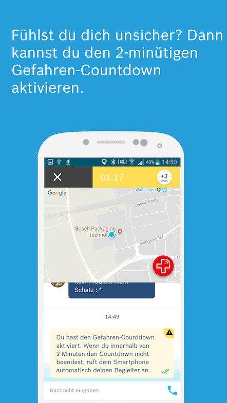 Aktiviert man in Momenten, in denen man sich besonders unwohl fühlt, den Gefahrencountdown und beendet diesen nicht innerhalb von 2 Minuten, wird der eigene Überwacher entweder sofort angerufen (Android) oder erhält zumindest eine Benachrichtigung (iOS).