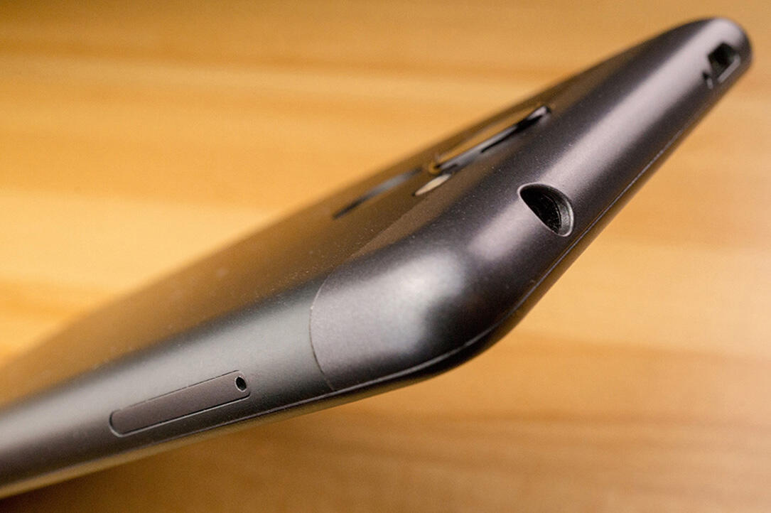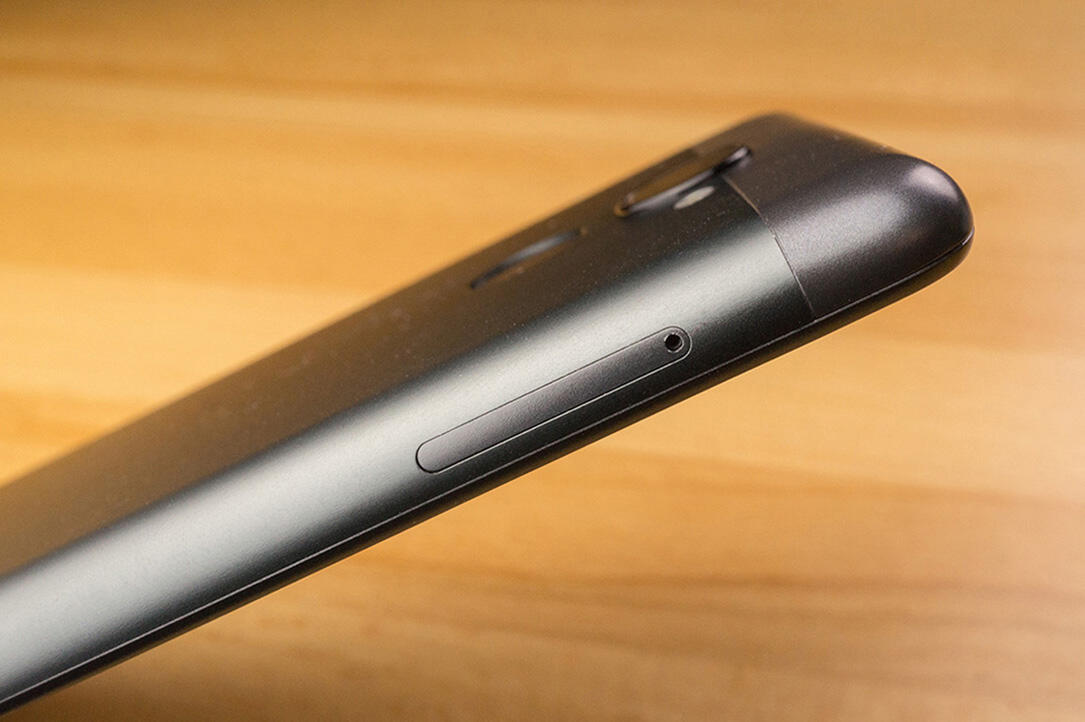 Auf der gegenüberliegenden Seite wurde der Dual-Nano-SIM-Schacht angebracht. Der zweite Slot kann entweder mit einer zusätzlichen SIM-Karte oder einer microSD-Karte bestückt werden.