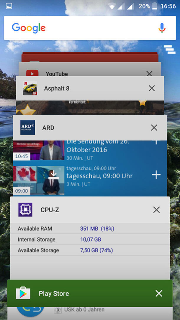 Sehr positiv sind auch die Gesamtperformance, sowie Android 6.0.1 in der Vanilla-Variante zu bewerten. Der fast leere Homescreen und die quasi nicht vorhandene Bloatware erfreuen direkt beim ersten Einschalten. Im Gegensatz zu vielen Konkurrenzprodukten hat man hier nicht das Gefühl, in eine Messie-Wohnung eingezogen zu sein und erstmal kräftig ausmisten zu müssen.