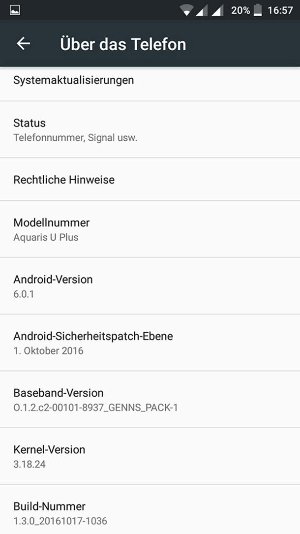 BQ nutzt auf dem Aquaris U Plus die relativ aktuelle Android Version 6.0.1, mit klassischer Vanilla-Oberfläche. Ein Hinweis auf der Website verspricht in Bälde ein Update auf Android 7.0 Nougat.