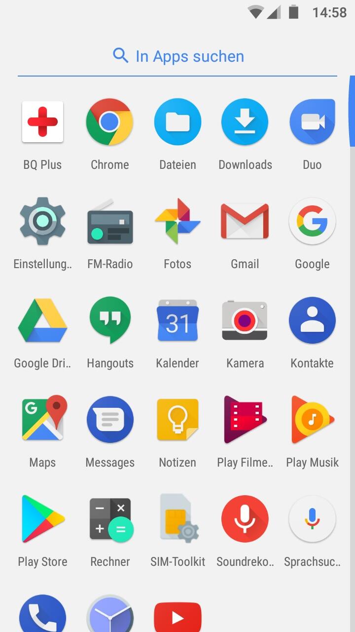 Bereits in meinen anderen Testberichten zu Smartphones der Marke BQ lobte ich den Hersteller dafür, auf reines Android zu setzen, was auch beim BQ Aquaris V wieder einmal der Fall ist. Ausgeliefert wird dieses mit vorinstalliertem Android 7.1.2 Nougat, dessen Oberfläche in keinster Weise angerührt wurde. Auch Bloatware ist nicht vorinstalliert, lediglich eine herstellereigene App namens BQ Plus ist an Bord, um den digitalen Abschluss der gleichnamigen Zusatzgarantie zu ermöglichen.