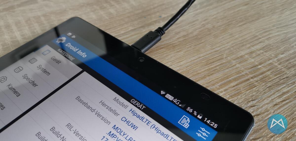 Verbaut wurde ein USB Typ-C Anschluss, der aber zumindest in meinem Fall teils komisch reagierte. Je nachdem ob das Tablet eingeschaltet war oder nicht wurde schneller geladen oder nicht. Auch hielt das Tablet im Standby „nur“ 2-3 Tage durch. Beinahe als würde etwas nebenher am Akku ziehen.