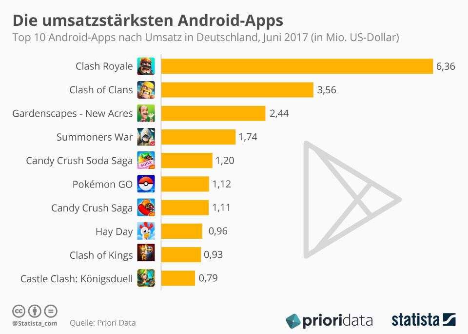 Die zehn umsatzstärksten Play Store-Apps in Deutschland sind sogar allesamt Spiele. Das Freemium-Modell scheint sich also weiterhin auszuzahlen.