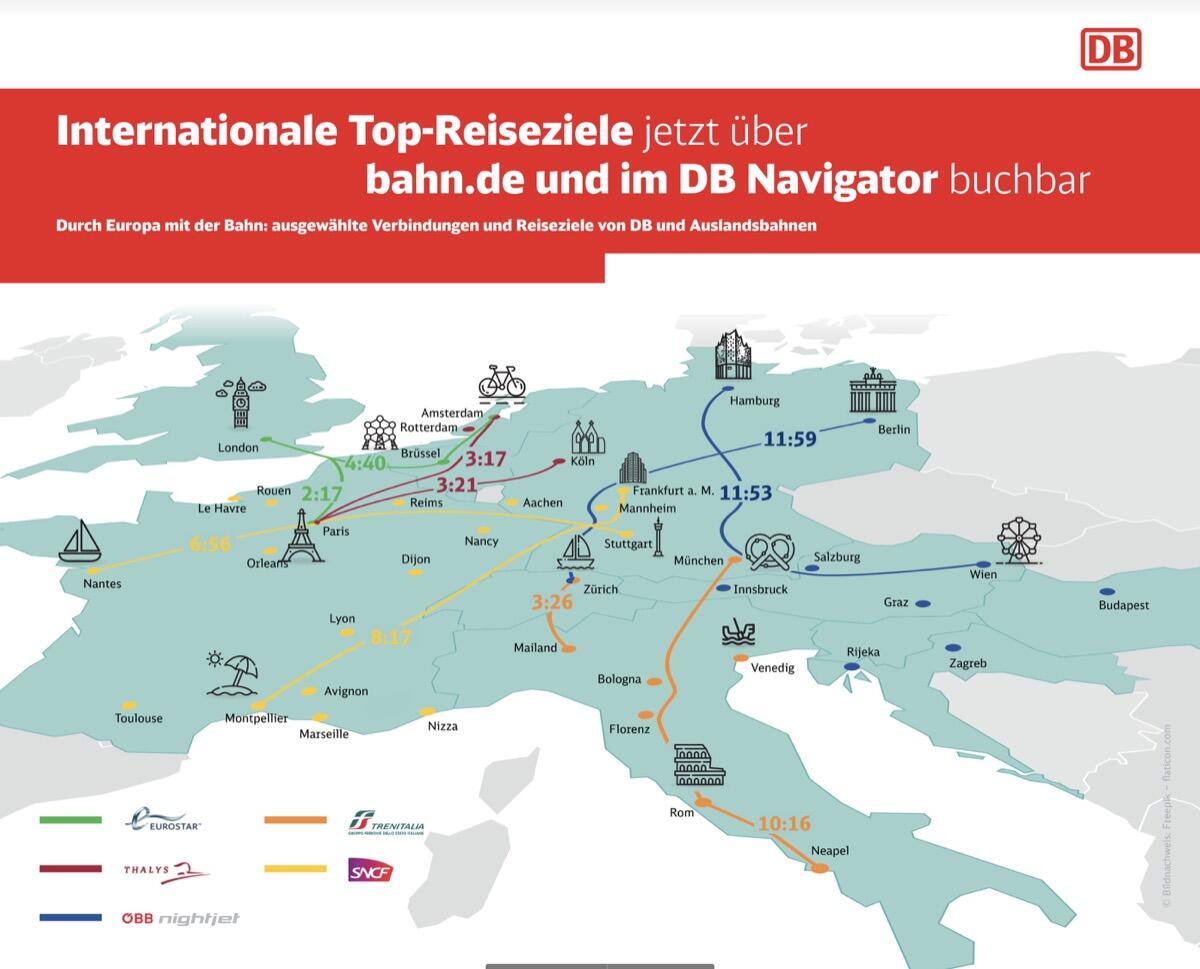 Wie die Deutsche Bahn in dieser Woche mitgeteilt hat, sind nun weitere internationale Verbindungen über den DB Navigator und auch online buchbar.