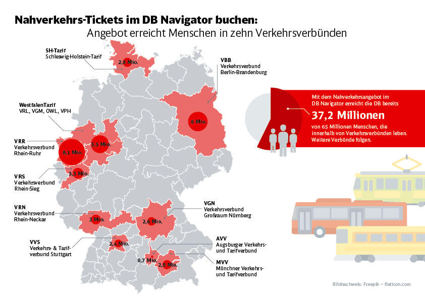 Wie die Deutsche Bahn aktuell mitteilt, können mittlerweile mehr als 37 Millionen Menschen ihre Nahverkehrs-Tickets im DB Navigator buchen.