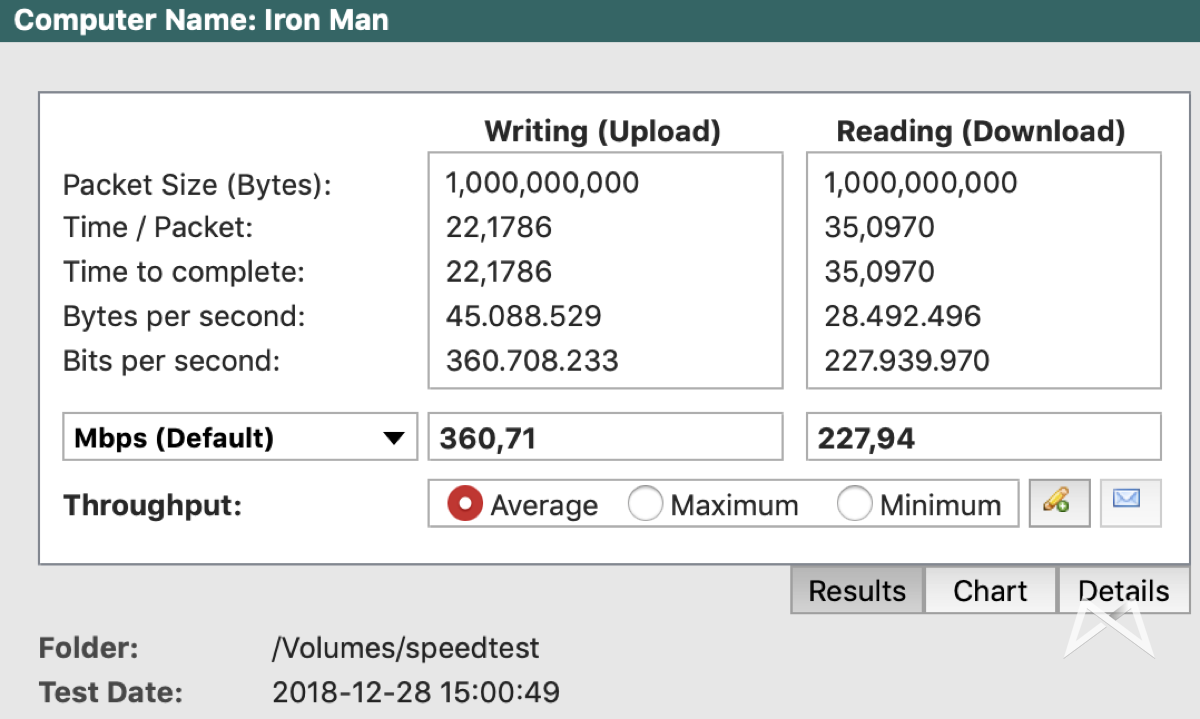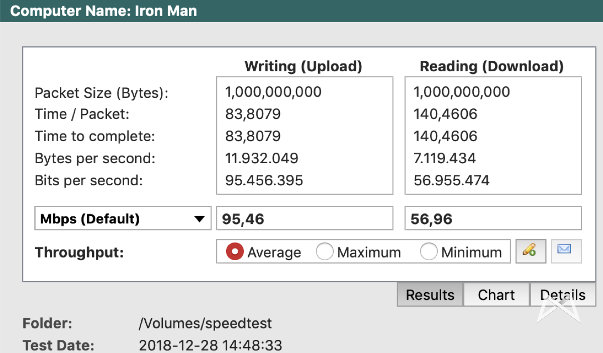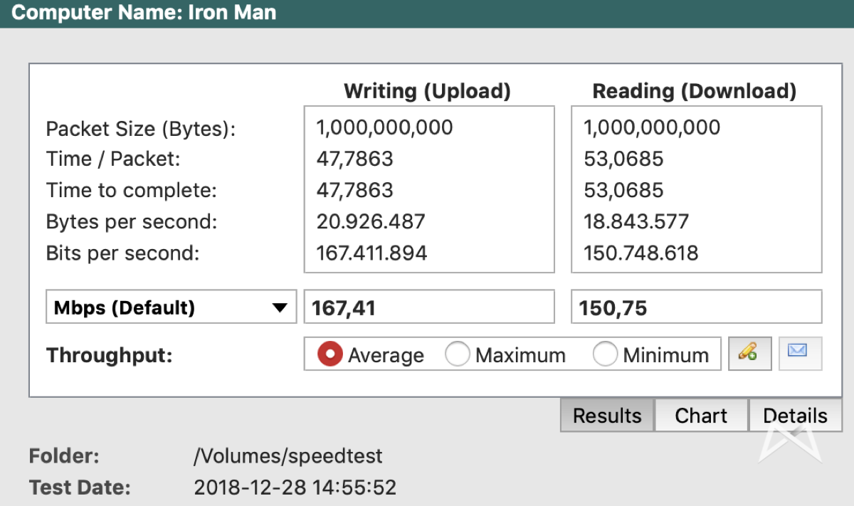 Ich hatte einfach zwei Rechner, die per Gigabit full-duplex LAN dann eine Datei mehrere male hin- und herkopiert haben. Das habe ich mit der Fritzbox und dem Devolo Kit einmal per LAN und per WLAN gemacht. Das Ergebnis war eher ernüchternd.