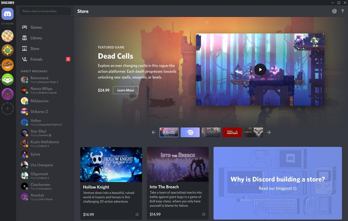 Aber auch Nutzer, die kein Discord Nitro-Abonnement besitzen, sollen schon bald Spiele über Discord beziehen können. Zu diesem Zweck wurde ein neuer digitaler Game-Store entwickelt, der schon bald allen Nutzern zur Verfügung stehen soll. Anders als Steam möchte man auch hier nur eine ausgewählte Menge Spiele anbieten und einige gar die ersten 90 Tage exklusiv anbieten. Zudem soll der Aufbau des Stores sehr persönlich werden – Feedback der Discord-Mitarbeiter und -Nutzer soll prominent angezeigt werden und bei der Kaufentscheidung helfen.