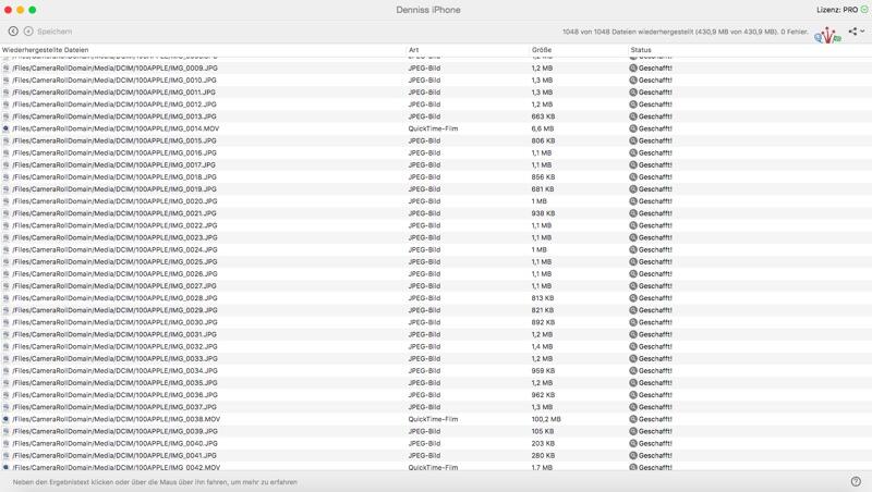Wirklich froh war ich über die mehr als 300 GB an Filmen welches das Programm wiederherstellen konnte. Hier hatte ich die One-Click-Lösung probiert, die nennt sich schlicht „alle Wiederherstellungsoptionen“. Ob auch hier nun alle Filme gefunden wurden, kann ich gar nicht sagen, da ich über den Bestand auch vorher keinen Überblick hatte. Wichtig zu sagen ist, die Filme die als Stichprobe meinen Kindern abgespielt habe liefen einwandfrei.