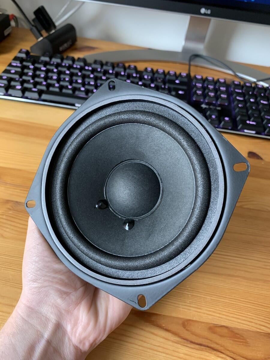 Den größten Aufwand hatte ich mit der Recherche der neuen Tiefmitteltöner. Da ich die restliche Elektronik behalten wollte und auch die Box an sich soweit möglich intakt lassen wollte, mussten also Chassis her, deren Spezifikationen ungefähr zu den bisherigen passen. Dazu sollte der Lochabstand noch zu den alten Gewinden passen.