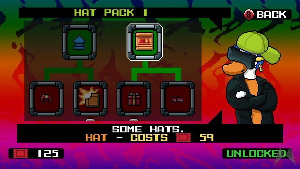 Teilweise ergeben sich Frustmomente, die an Super Meat Boy erinnern, ein paar Millisekunden zu spät geklickt und der Fortschritt der letzten Minute ist zunichte – gern auch zum dreißigsten Mal in Folge. Mit Erreichen neuer Medaillen werden zusätzliche Automaten freigeschaltet, die wiederum neue Hüte und Modifikatoren freischalten – auch und vor allem für den Mehrspieler sind ein paar Runden alleine also von Relevanz.