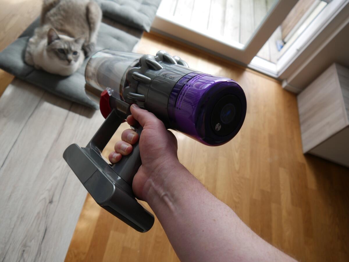Für genau diesen Zweck ist der V11 optimal, denn er ist jederzeit zum Einsatz bereit und man muss nicht erst schauen, wo man das Kabel reinsteckt. Einfach den Sauger nehmen, zum Ort gehen und kurz saugen. Das war meine Idee von so einem Produkt und ich muss sagen, dass es auch genau so ist.
