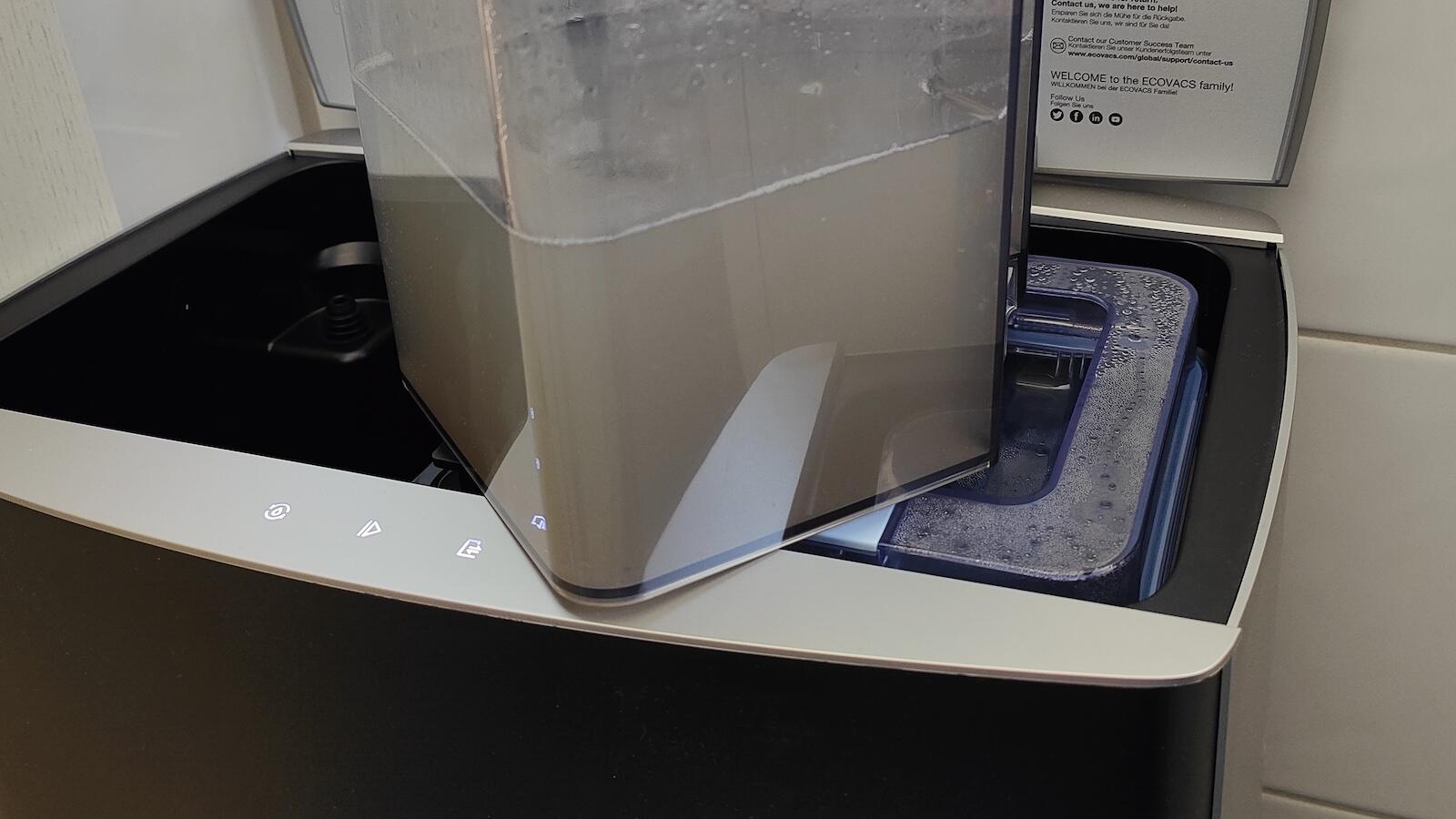 - Ein paar Punkte gibt es dann doch noch zu erwähnen. Beispielsweise haben die Wischpads auch einen Nachteil. Wenn man sie angelegt hat und trotz mehrfacher Sprachansage oder Push-Nachricht vergisst den Frischwasser- und Brackwasserbehälter in der Absaugstation nachzufüllen fährt der Deebot Omni einfach nicht los. Auch nicht, wenn nur gesaugt werden soll.