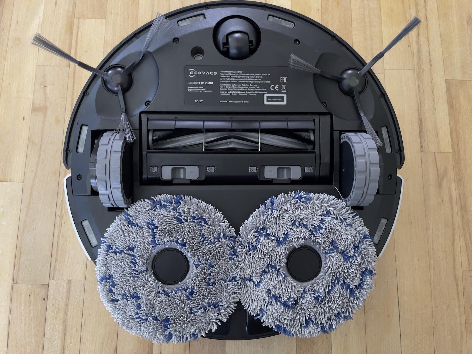 Der Deebot Omni X1 hat auf der Unterseite zwei Teller, auf denen magnetisch Möppe festgeklemmt werden. Diese drehen sich bei der Wischreinigung mit.