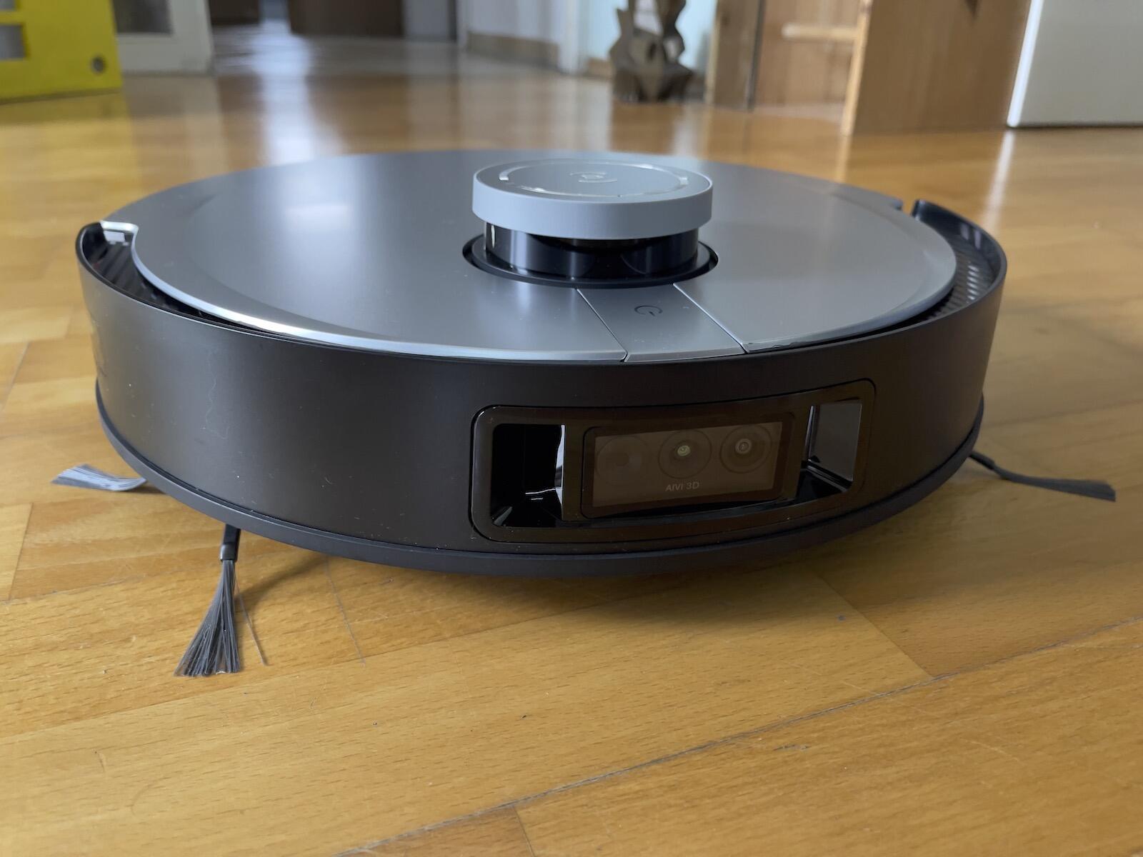 Zur Navigation nutzt der Deebot X1 Omni unter anderem das oben angebrachte Radar-System, aber auch eine sehr intelligente Software in Verbindung mit an der Front angebrachter Kameras und Sensoren. Die Technik hier hört auf den Namen Aivi 3D und ich muss sagen, dass der Robosauger in meinem Test überaus schlau navigiert hat. Ich habe fast keine Rumpler an Möbeln feststellen können. Auch testweise mit Absicht liegengelassene Ladegeräte inkl. Kabel wurden ebenfalls umfahren und auch der kleine Teppichvorleger vor dem Balkon wurde vom Sauger umfahren, statt mit den feuchten Wischmöppen über den Teppich zu schrubben.