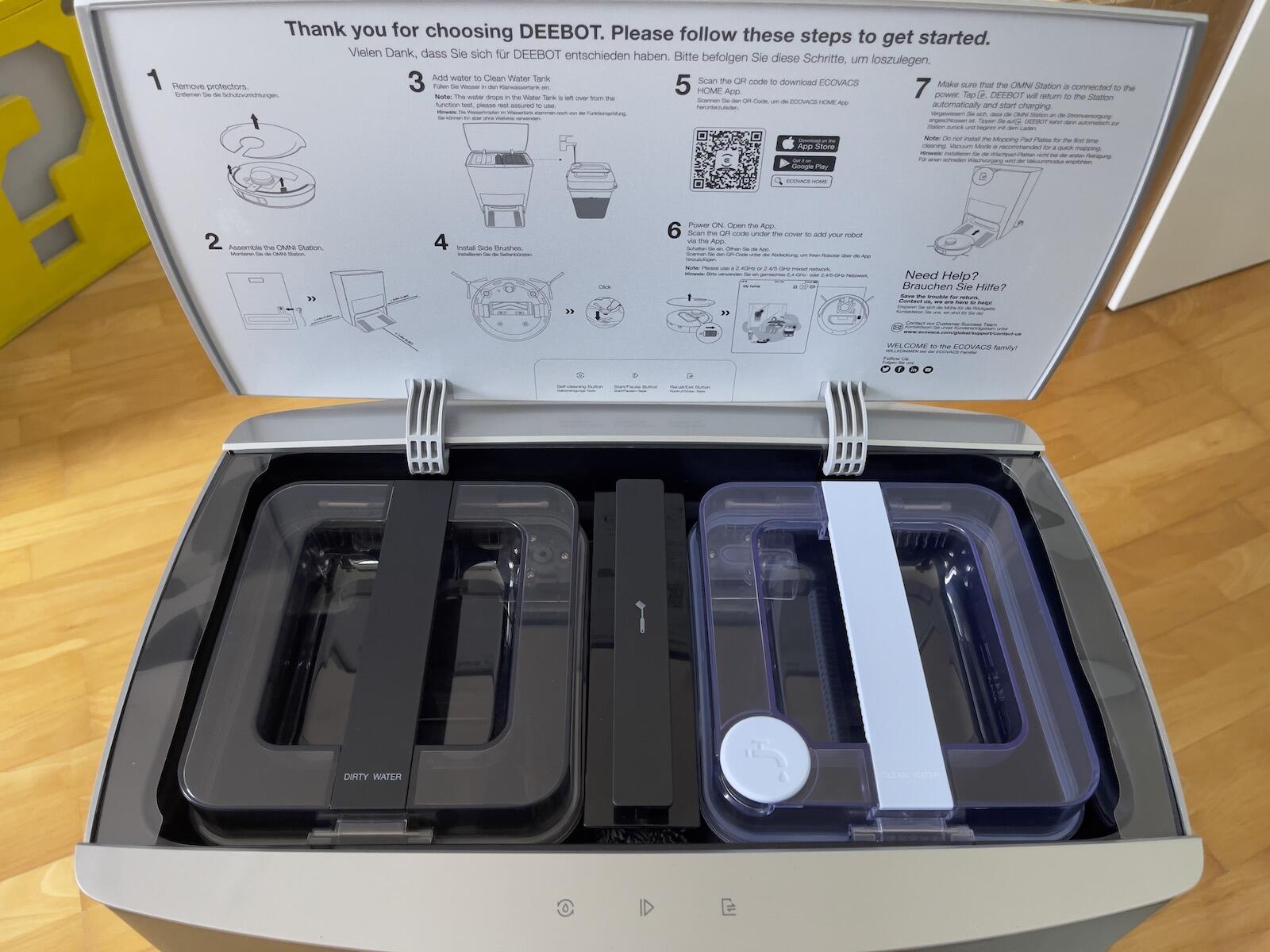 • Ein paar Punkte gibt es dann doch noch zu erwähnen. Beispielsweise haben die Wischpads auch einen Nachteil. Wenn man sie angelegt hat und trotz mehrfacher Sprachansage oder Push-Nachricht vergisst den Frischwasser- und Brackwasserbehälter in der Absaugstation nachzufüllen fährt der Deebot Omni einfach nicht los. Auch nicht, wenn nur gesaugt werden soll.