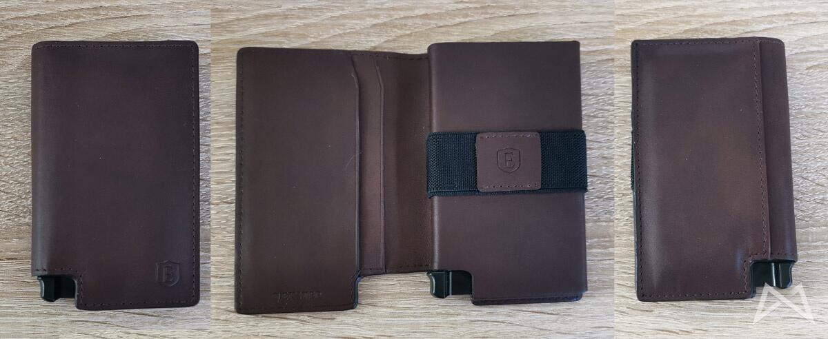 Zugeschickt wurde uns die Farbe Parliament (braun) inkl. Platz für einige zusätzliche Karten. So ist das Fach aus Aluminium im inneren von einem Gummiband eingefasst, welches das Scheingeld aufnehmen kann.