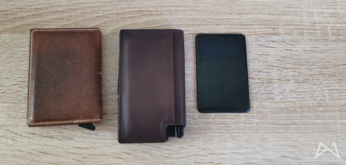 Das Material links im Falle der SECRID ist Kork und durch die jahrelange Nutzung schon gut mitgenommen. Ich mag das aber. Das Ekster Wallet ist ein wenig länger, aber dadurch ist der Mechanismus zum Ausfahren der Karten leichter zu bedienen.