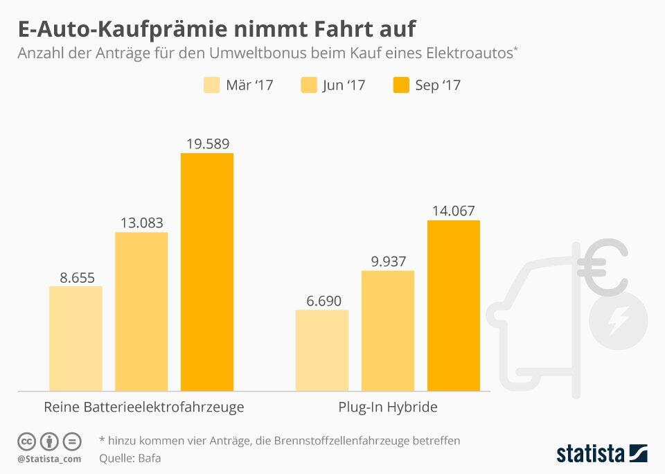 Bis Ende September sind bei der ausführenden Behörde – dem Bundesamt für Wirtschaft und Ausfuhrkontrolle – rund 33.700 Anträge eingegangen, davon etwa 19.600 für reine Batterieelektrofahrzeuge. Damit sind von Juli bis September über 10.000 neue Anträge hinzugekommen. Das sind deutlich mehr als in den Vorquartalen.