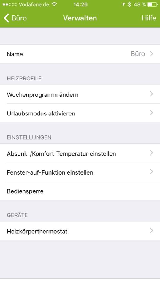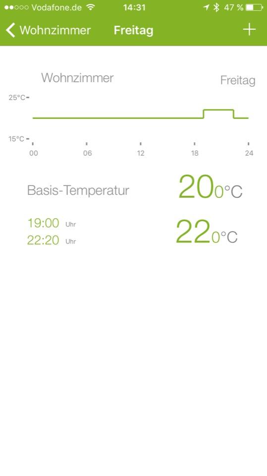 Generell macht die App nichts, was man nicht auch manuell, aber eben viel umständlicher, direkt am Thermostat machen könnte. Es lassen sich Heizzeiten, Lüfterkennung, Urlaubsmodus und einiges mehr konfigurieren. Dabei können Einstellungen für einzelne Tage auf andere Tage kopiert und weitere Optionen angepasst werden. Die detaillierte Verwaltung ist ganz gut gemacht und erlaubt verschiedene Heiz- bzw. Temperaturphasen pro Tag anzulegen.