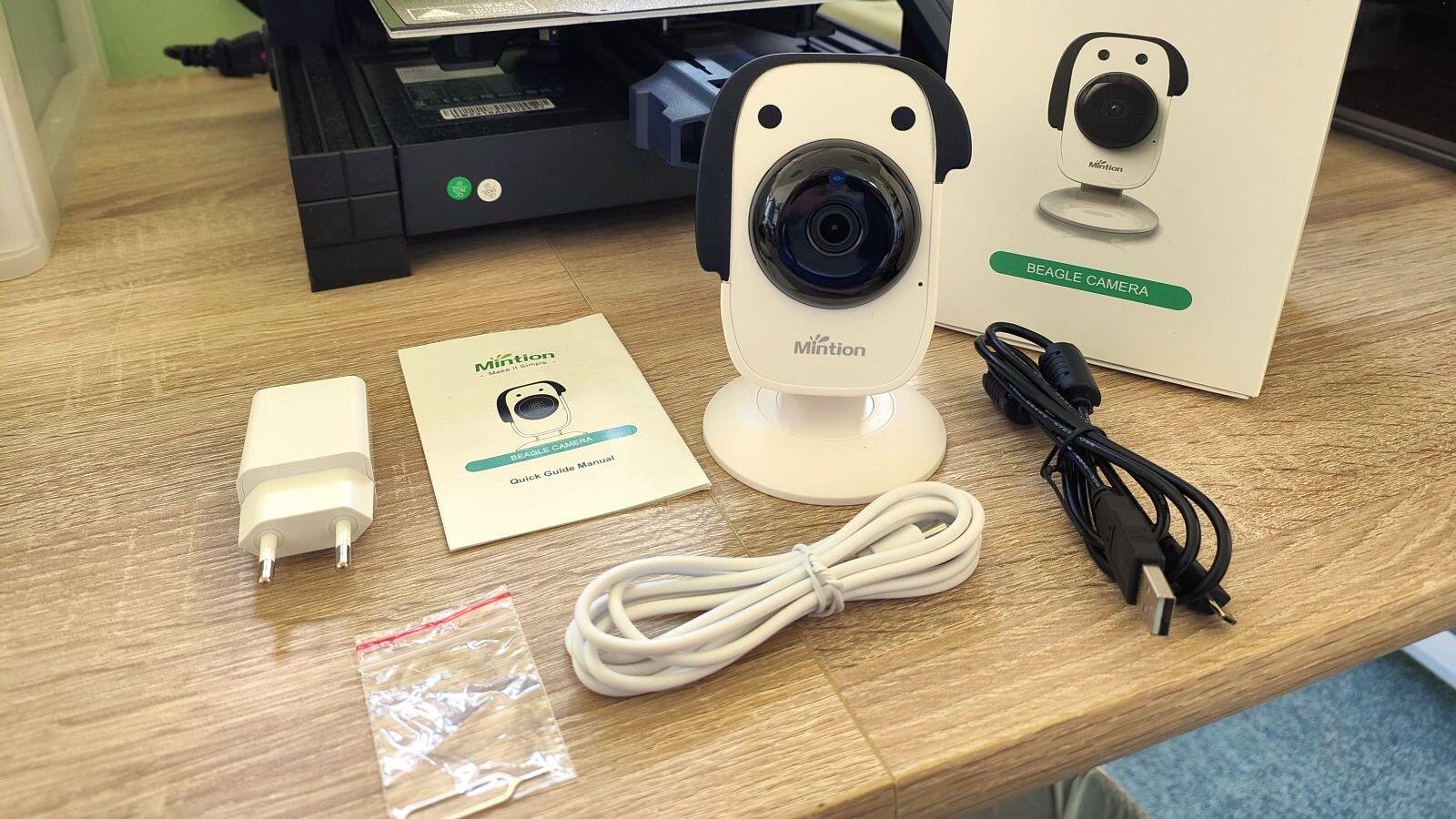 Im Lieferumfang befinden sich die nötigen Utensilien, wie ein USB-Netzteil inkl. Kabel (Typ-C) zum Anschluss und der Stromversorgung der Beagle Cam. Ein weiteres Kabel, zum Anschluss des Druckers an die Kamera ist ebenfalls dabei. In meinem Fall war das ein USB Typ-A zu Micro-USB und eines zu Typ-C. Ein Metall-Nupsi, um die Kamera ggf. einem Reset zu unterziehen, eine kleine Anleitung und die Kamera selbst, welche auf einem dreh- und kippbaren Standfuß steht sind ebenfalls noch im Lieferumfang dabei.