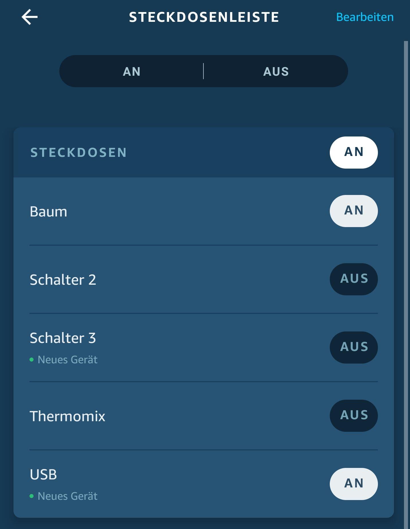 Durch den Button an der Steckdosenleiste kann der Strom natürlich jederzeit auch ohne Assistent komplett ein- oder ausgeschaltet werden. Eine Steuerung der einzelnen Steckdosen über den Button habe ich aber nicht hinbekommen.