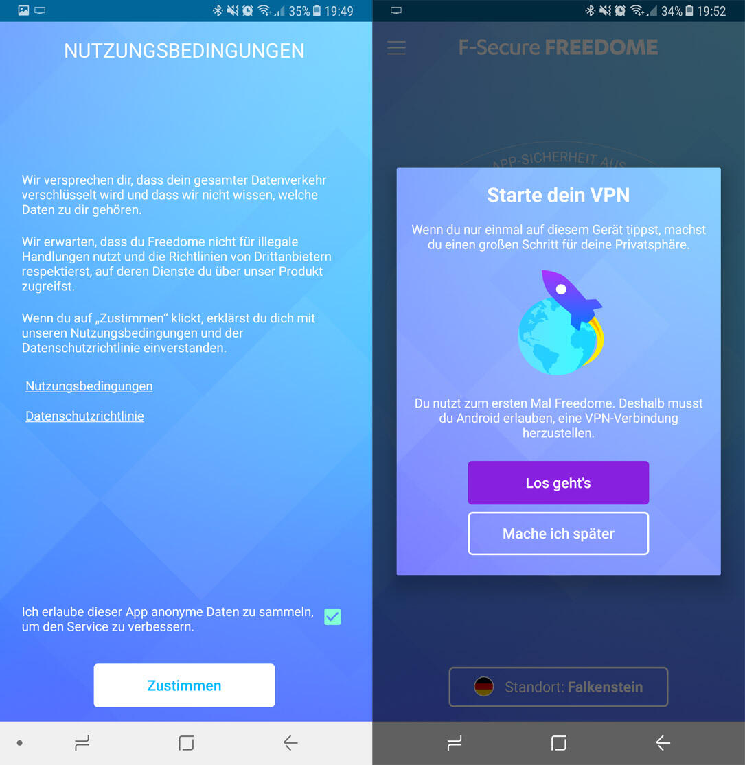 Später fiel mir dann ein, dass ein Freund immer von F-Secure geschwärmt hatte und so musste ich FREEDOME einfach mal ausprobieren. Die App ist für Android, iOS, Mac und Windows erhältlich und eine normale Lizenz (4,16 EUR pro Monat oder 49,90 EUR pro Jahr) ist gültig für ein Jahr und bis zu drei Geräten und kann erweitert werden auf bis zu sieben Geräte und ein Jahr Gültigkeit.