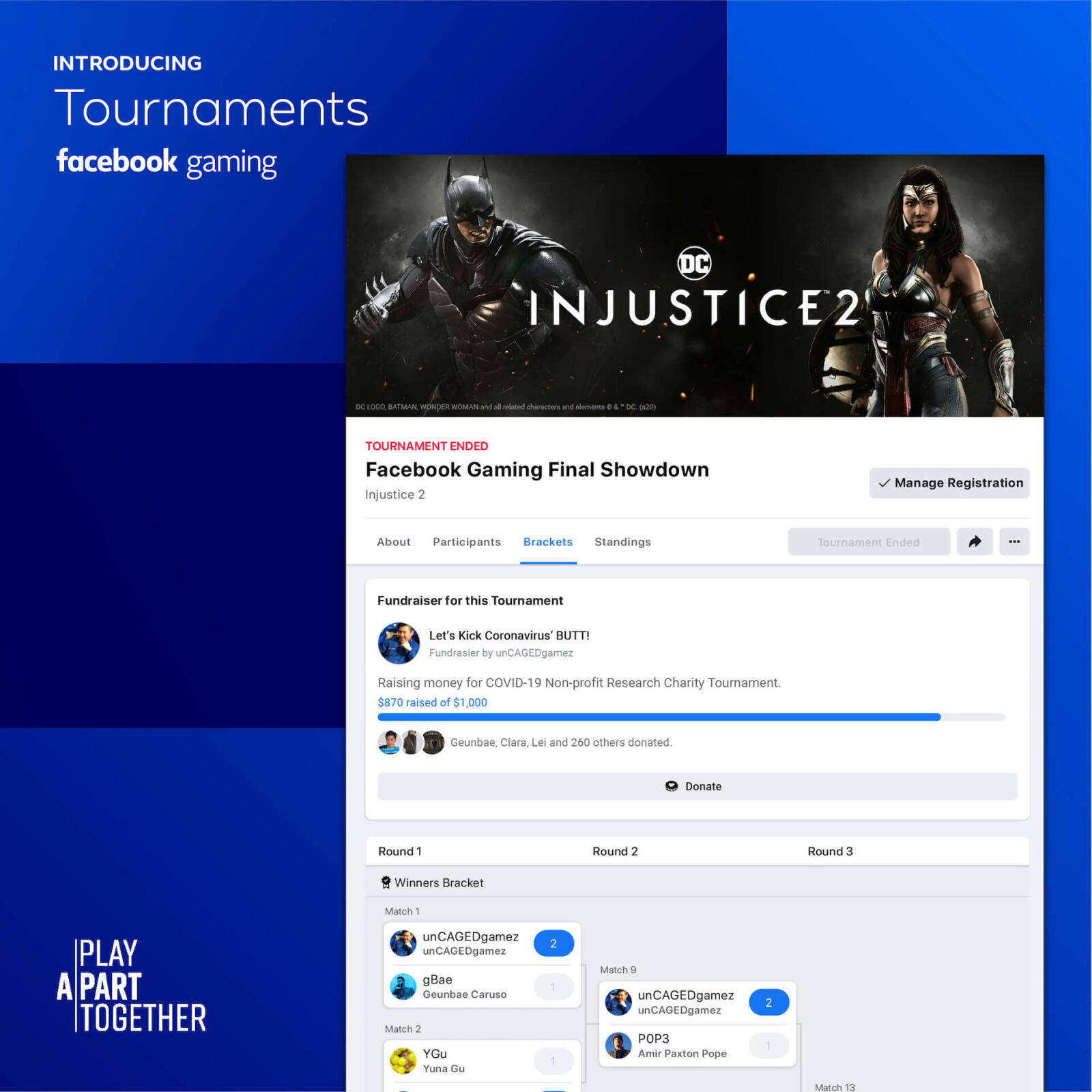 Facebook selbst erhofft sich von den neuen Tournaments insbesondere, dass die Streamer der eigenen Plattform sie einsetzen, um mehr Kontakt zu ihren Zuschauern aufzubauen. Ihnen steht dazu passend dann auch die Spenden-Funktion zur Verfügung, die genutzt werden kann, um als Turnierveranstalter Geld für einen wohltätigen Zweck zu sammeln.