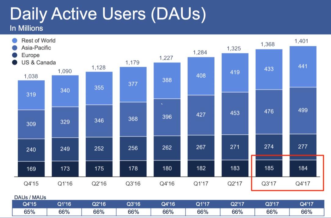 Beispiele findet man dazu mittlerweile viele, einen guten Bericht dazu liefert unter anderem Bloomberg. Das Wachstum der täglich aktiven Nutzer wächst nicht mehr so schnell und war im vierten Quartal in den USA sogar erstmals rückläufig.