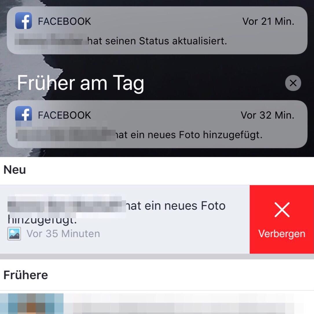 Facebook schickt immer häufiger Benachrichtigungen zu Dingen, bei denen ich vor ein paar Wochen noch keine bekommen habe. Und: Ich kann diese verbergen, aber mittlerweile immer seltener angeben, dass diese Art der Benachrichtigung auch dauerhaft gesperrt wird (normalerweise gibt es diese Option, wenn man über die Benachrichtigung wischt, hier war aber nur ein „Verbergen“ zu sehen).