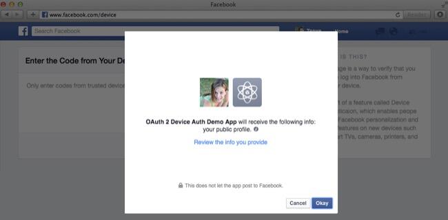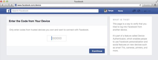 Durch die Erweiterung der hauseigenen Programmierschnittstelle (API) ist es nun jedem Entwickler möglich, Facebook-Logins auch auf Endgeräten anzubieten, deren Eingabemöglichkeiten sehr beschränkt oder eventuell sogar gar nicht vorhanden sind. Zu diesem Zweck wird auf dem Endgerät einfach ein Code angezeigt, der dann auf der Facebook-Webseite unter facebook.com/device eingegeben werden kann. Von dort an startet dann die Verbindung zum eigenen Facebook-Account. Ähnliches kennen wir bereits von den SmartTV-Apps von YouTube oder Amazon Instant Video.
