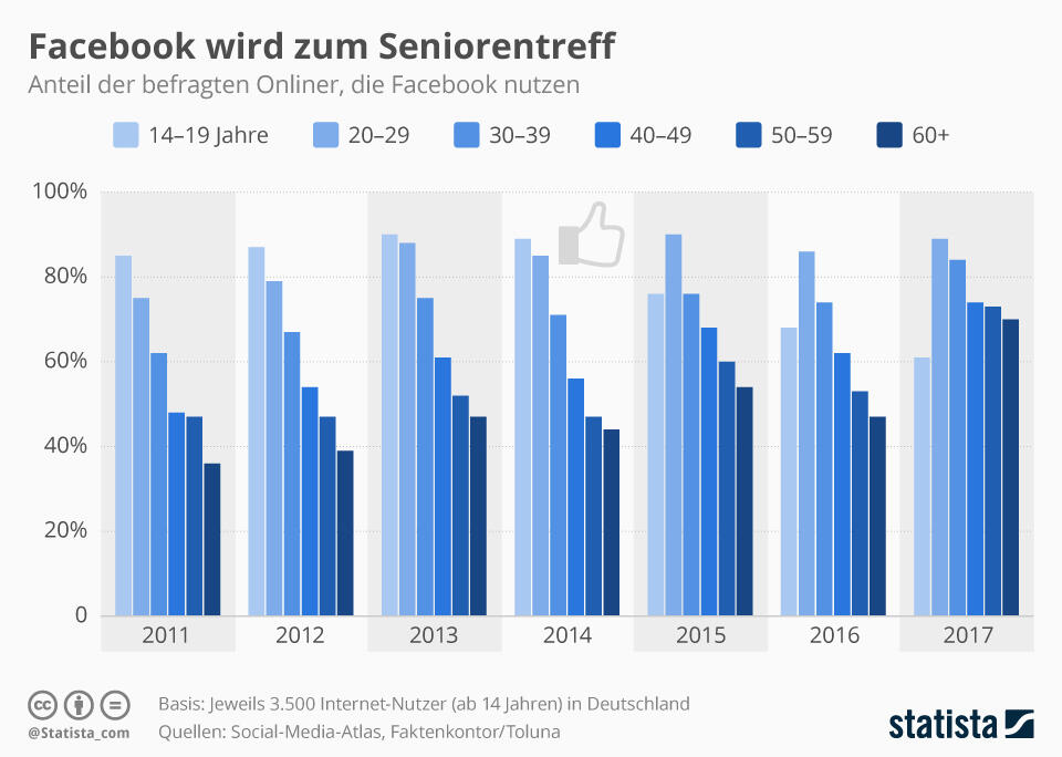 Facebook wandern die jungen Leute ab, das Netzwerk wird zunehmend von älteren Menschen dominiert. Die Werbeindustrie hat kein Problem damit.