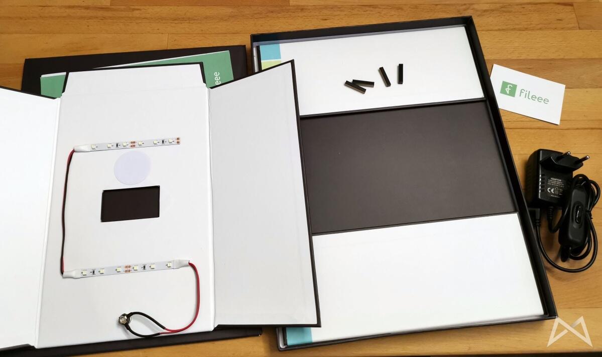 Wer ein bisschen kreativ sein möchte, kann die fileeeBox so auch noch als kleine Lightbox bzw. Mini Fotostudio nutzen. Hierfür druckt man sich einfach einen entsprechenden Hintergrund aus oder nutzt ein Stück einer Foto-Tapete oder dergleichen und platziert kleine Objekte darauf, die man für eBay oder für Testberichte ablichten möchte.