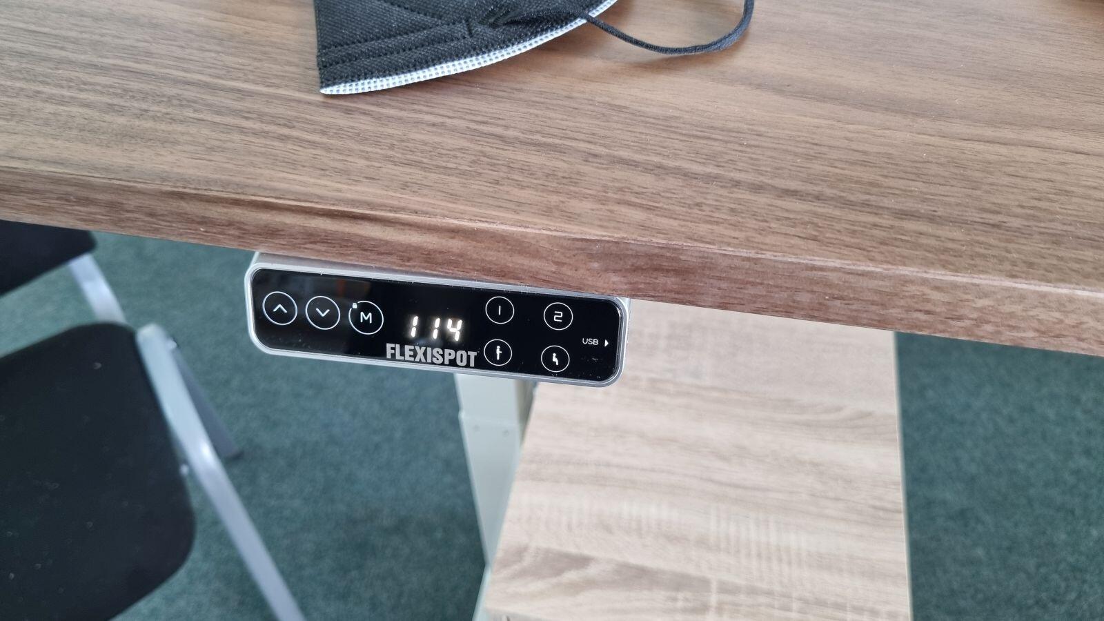 Die FlexiSpot Schreibtische können variabel – je nach Budget – im Funktionsumfang und am Ende dann auch im Preis widerspiegelnd konfiguriert werden. Mein FlexiSpot E7 hat zwei Motoren – für jeden Fuß einen – und ein schickes Touchpad (Bedienteil) mit Display, welches die aktuelle Höhe in Zentimetern mit einer Nachkommastelle anzeigt.
