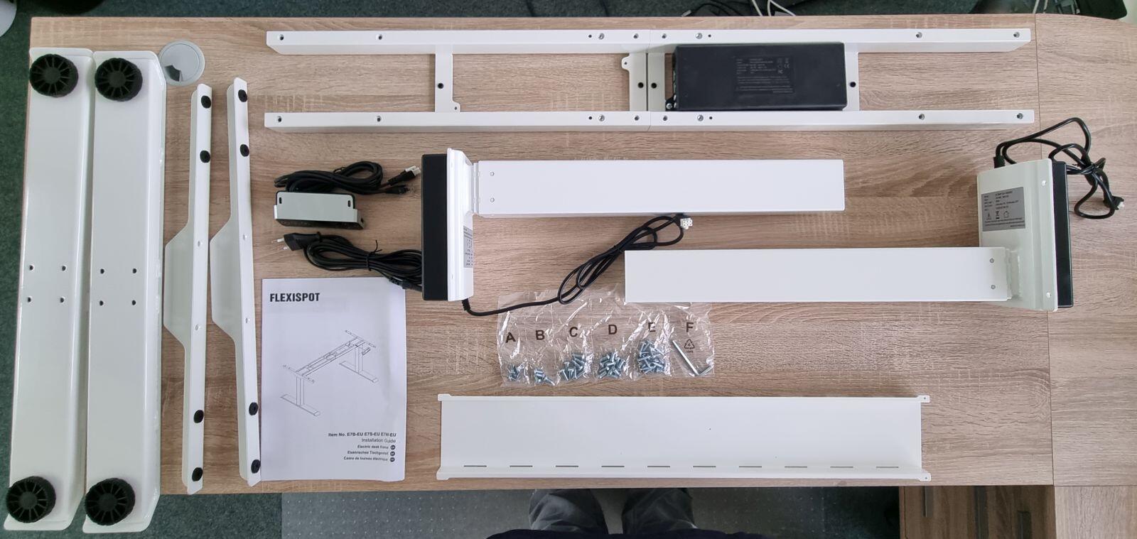 Geliefert wurde der E7 in insgesamt 3 Paketen. Zwei davon waren für das Gestell und die Motoren etc. Im dritten Paket, welches über die Weihnachtsfeiertage etwas verspätet geliefert wurde, befand sich dann noch die Arbeitsplatte.