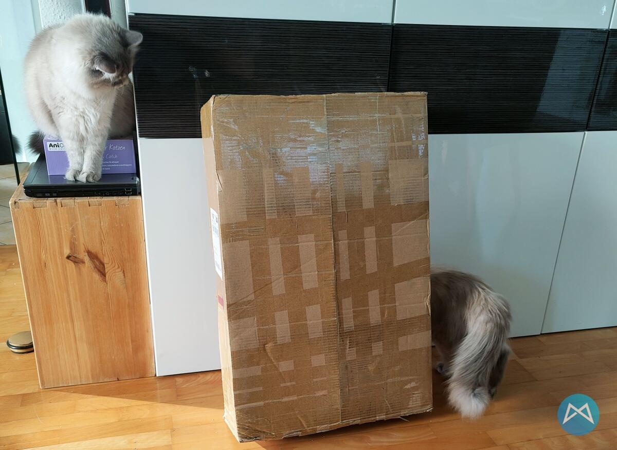 Gestern traf der Flsun QQS Delta 3D-Drucker bei mir ein und natürlich konnte ich es nicht lange aushalten und musste nach der ausführlichen Wareneingangskontrolle von meinen Katzen Billy und Easy das Paket aufreißen und den 3D-Drucker auspacken und aufbauen.