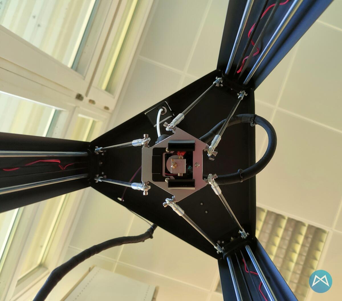 Abgesehen davon fasziniert natürlich das Prinzip der 3 Arme, die wie wild herumfuchteln und trotzdem präzise Objekte drucken können statt einem Drucker, der wie sonst üblich mit einer normalen X, Y und Z-Achse aufwartet.