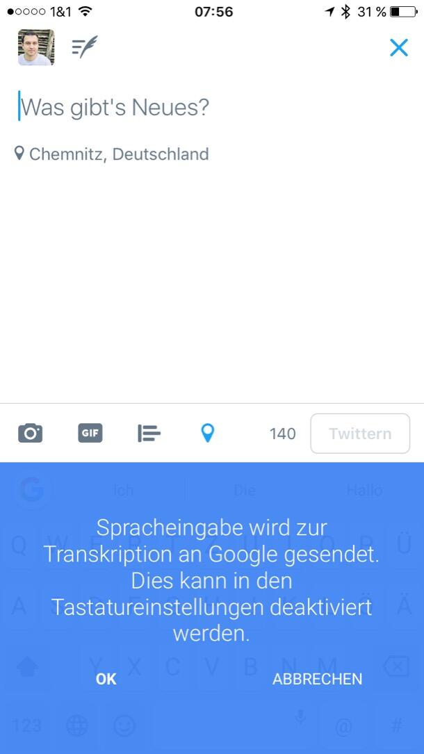 Ich will nicht lange die Details aus dem Changelog aufzählen, bevor ich zum eigentlichen Highlight des Updates komme: Gboard kann nun auch Spracheingabe. Damit ist es meines Wissens nach die erste und einzige externe iOS-Tastatur die das neben der Apple-Tastatur auch kann. Google bedient sich dabei eines kleinen Workarounds, der sehr gut funktioniert.