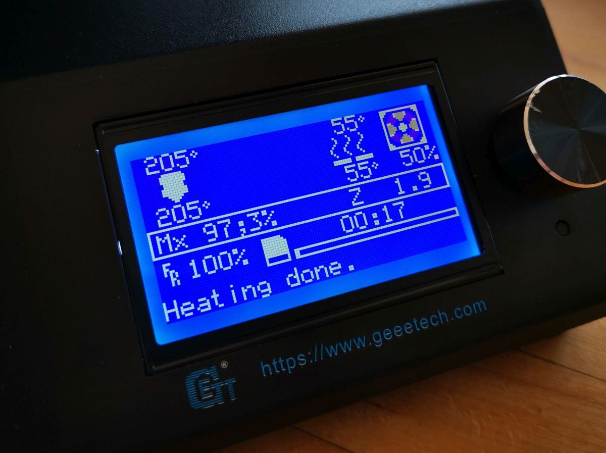 Das Display ist hochwertig und sehr gut ablesbar. Die Elektronik befindet sich im sonst ungenutzten Raum unterhalb des Heizbetts. Dadurch kommt man nicht mit dem Netzteil in Berührung, wie bei diversen super günstigen 3D Druckern und benötigt auch nicht noch 20cm neben dem Drucker Platz für eine extra Elektronikbox inkl. Netzteil und Platine etc.