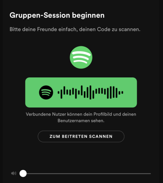 Dabei ist es ganz einfach, eine Gruppen-Session zu erstellen. Ihr findet die Funktion, indem ihr auf dem Wiedergabebildschirm das Lautsprecher-Symbol unten links anwählt und anschließend etwas nach unten scrollt. Eure Freunde müssen dann nur noch den dort abgebildeten Code einscannen und schon können sie die Musikwiedergabe steuern.