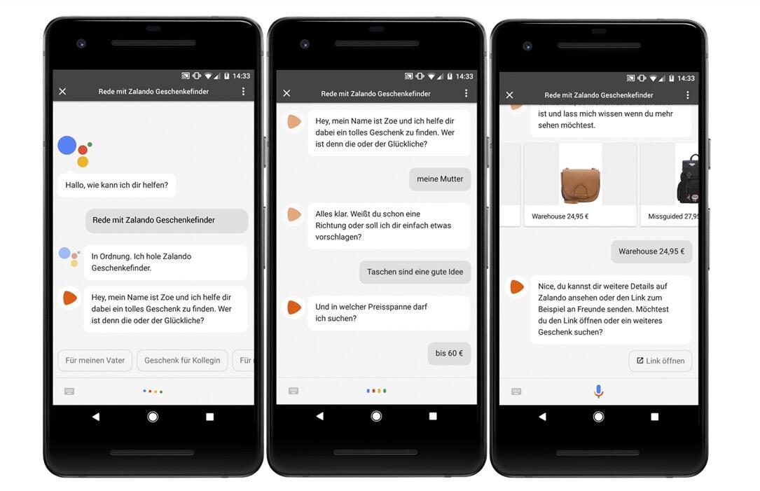 Ab sofort startet Google mit den ersten acht Partnern die „Actions on Google“ auch in Deutschland. Mit dabei sind ZalandoTV SpielfilmWetter OnlineTorAlarmRock AntenneOTTOBring! und Comdirect. Sagt der Nutzer zum Google Assistant zum Beispiel „Rede mit Zalando Geschenkefinder“ oder „Rede mit TV Spielfilm“, kann er einen Dialog starten und die Funktionen der „Action“ nutzen.