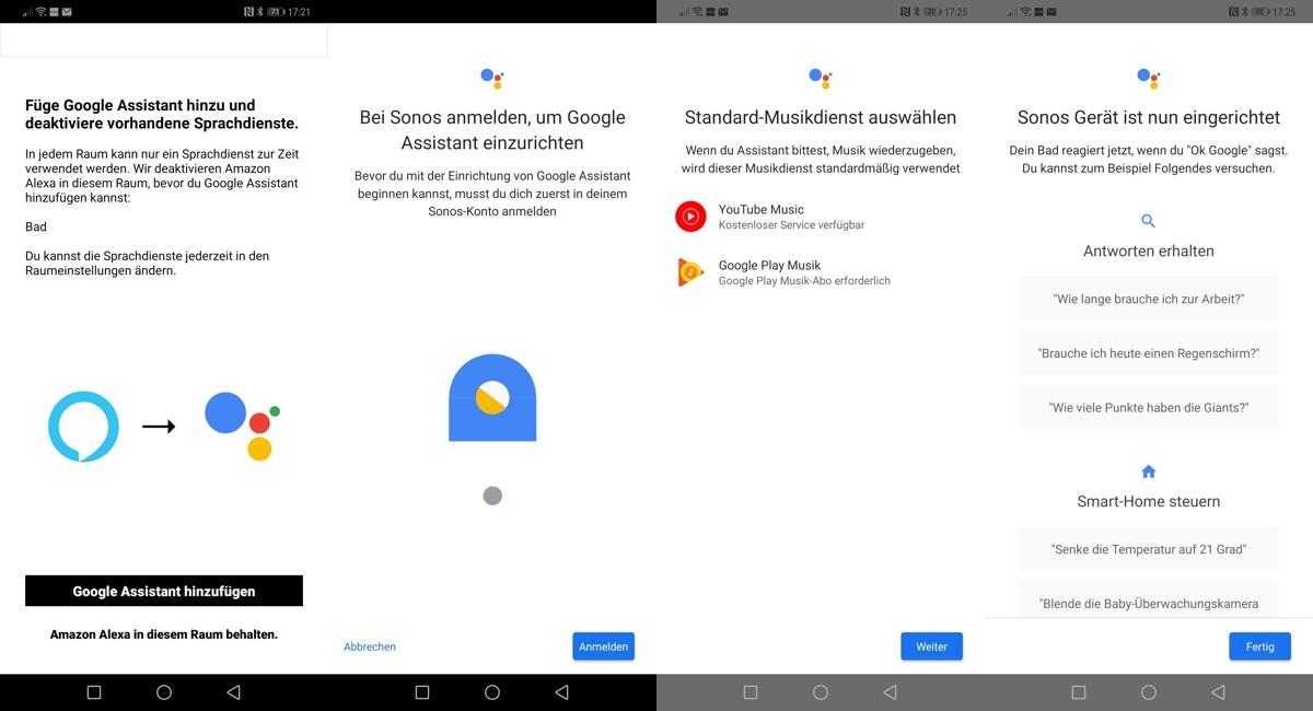 Sonos App starten → Mehr → Sprachdienste → Google Assistant → Lautsprecher auswählen → Google Konto verknüpfen und noch die heimische Adresse angeben.